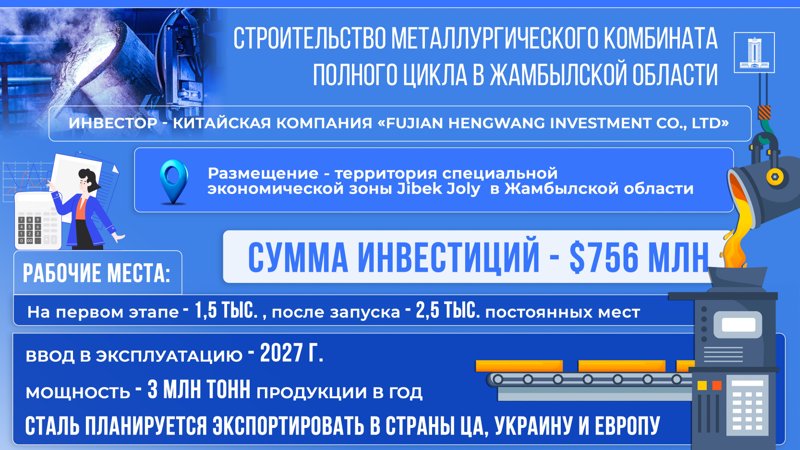 — После завершения строительства, наша продукция сможет восполнить существующий дефицит стали на рынке Казахстана. При этом, удовлетворяя внутренний спрос, мы также сможем экспортировать продукцию в соседние страны, тем самым внося вклад в развитие экономики и экспортного потенциала Казахстана. После запуска проекта, мы уверены, он сможет стимулировать развитие не только самого рынка, но и сопутствующих отраслей – логистики, освоения месторождений, а в более широком смысле – даже туризма и ресторанного бизнеса, — подчеркнул он.